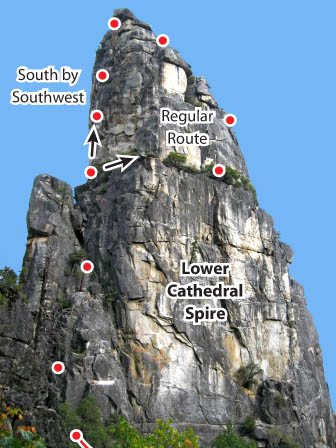 Our GearLoopTopo for the Regular Route and South by Soutwest on the Lower Cathedral Spire contains all the information you need, including directions starting from Camp 4.